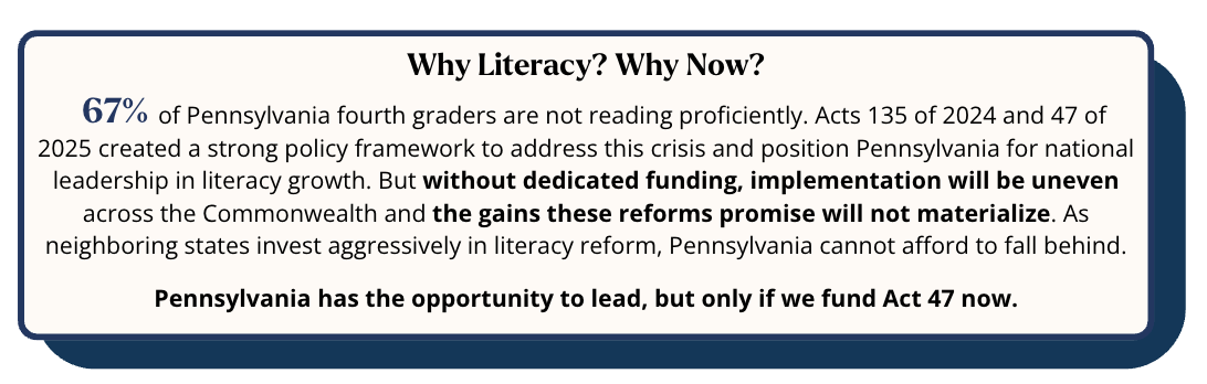 With strategic investment and coordinated implementation, Pennsylvania can become a national leader in literacy growth.
