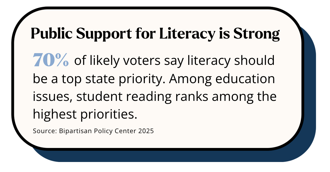 States such as Mississippi, Louisiana, and Tennessee have demonstrated that comprehensive literacy reform—paired with sustained funding and strong implementation—can significantly improve reading proficiency.